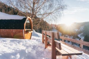 Rund ums Jahr erwartet Euch nach einem erlebnisreichen Tag meine Komfort Lodge – Euer behagliches Zuhause auf Zeit. Entspannen bei einem Saunagang in der eigenen Fasssauna oder lasst auf der Terrasse des Ferienhauses oder vor einem knisternden Feuer im Kaminofen den Tag in den Bergen ausklingen.