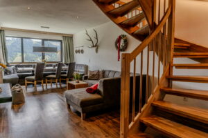 Rund ums Jahr erwartet Euch nach einem erlebnisreichen Tag meine Komfort Lodge – Euer behagliches Zuhause auf Zeit. Entspannen bei einem Saunagang in der eigenen Fasssauna oder lasst auf der Terrasse des Ferienhauses oder vor einem knisternden Feuer im Kaminofen den Tag in den Bergen ausklingen.