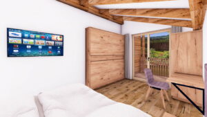 Freuen Sie sich auf 4 hochwertig ausgestattete Chalets für bis zu 8 Personen. Drei gemütliche Schlafzimmer – zwei mit Doppelbett, eines mit Doppelbett und Etagenbett – bieten ausreichend Platz für Familie oder Freunde. Jedes Schlafzimmer verfügt über ein eigenes Badezimmer mit Dusche und WC – für maximalen Komfort und Privatsphäre.